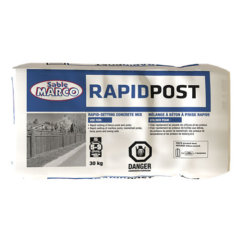 Sable Marco® Rapid Post is a pre-blended, rapid-setting concrete material designed specifically for installing fence posts and poles. Simply pour the bag content into the hole, add water, and stir with a rod or stick. Sable Marco® Rapid Post sets within minutes, eliminating the need for bracing, and posts can be used after just 3 hours.